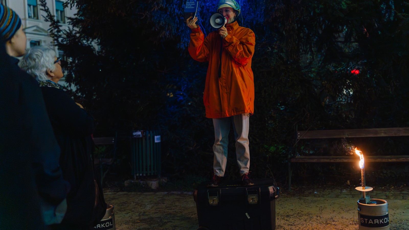 Kurz: Biedermann und die Brandstifter nicht auf der Bühne, sondern mitten in privaten Wohnzimmern – bei echten Menschen zu Hause, mit dem Publikum zwischen Sofa und Küchentisch. Ein einmaliges Theatererlebnis – ganz nah, ganz direkt, und keine Sorge: Wir brennen nichts nieder, wirklich.