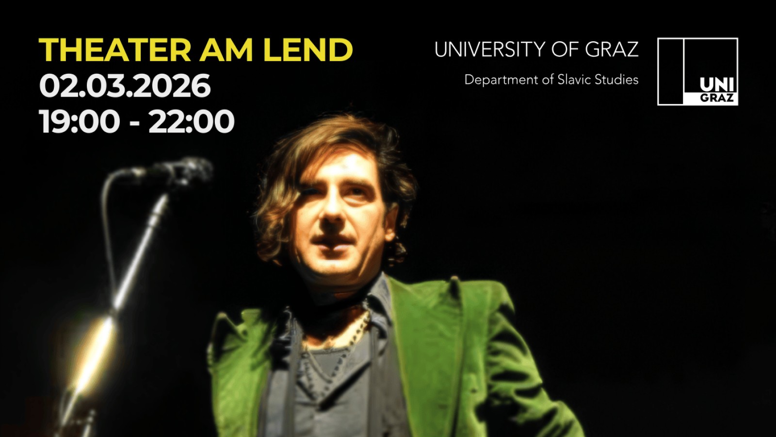 As part of the Winter College »Macedonian intermedial« at the Department of Slavic Studies of the University of Graz and in cooperation with the Southeast Europe Association e.V. (SOG), Theater am Lend will host an evening dedicated to contemporary Macedonian contemporary theatre. The program brings together students, scholars, and theatre practitioners in a format that combines discussion, performance, and public dialogue.